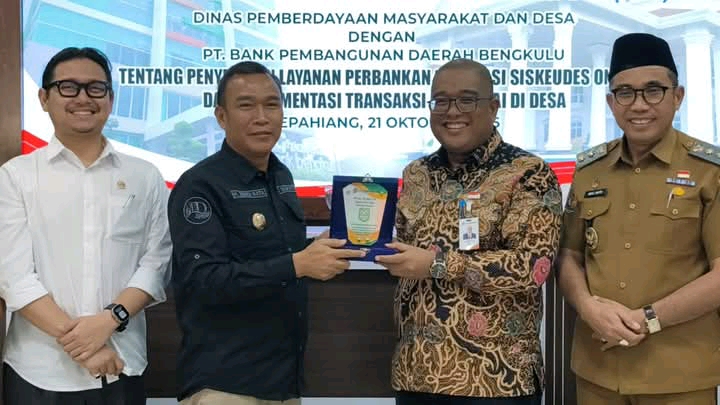 Kegiatan itu dirangkaikan dengan penandatanganan perjanjian kerja sama antara Dinas Pemberdayaan Masyarakat dan Desa (PMD) Kabupaten Kepahiang dengan PT Bank Bengkulu mengenai penyediaan layanan perbankan melalui aplikasi Siskeudes Online serta implementasi transaksi non-tunai di tingkat desa.